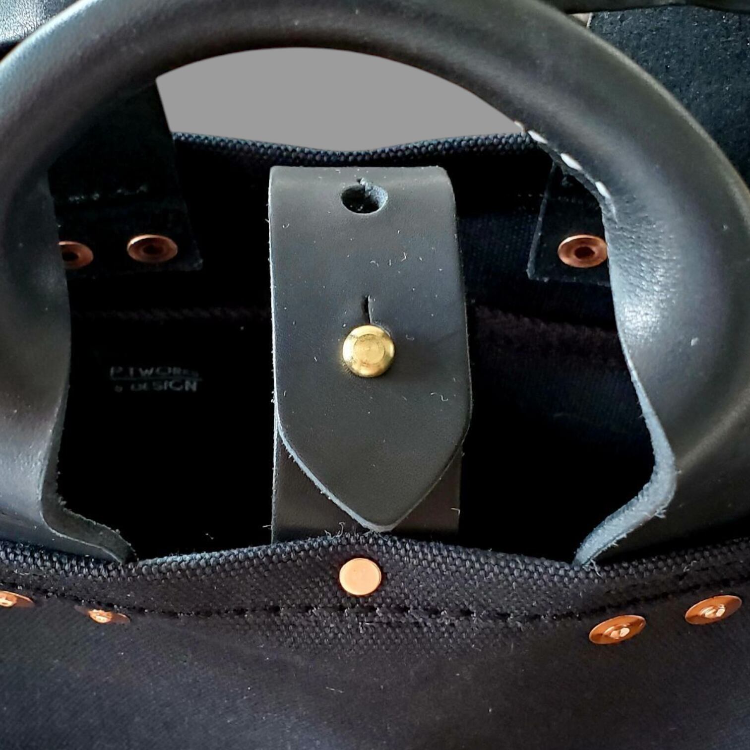 オプションで開口部が大きく開かないためのTOP PARTS (革、真鍮無垢ギボシ仕様、商品画像参照)を上部中央に取付ける事ができます。