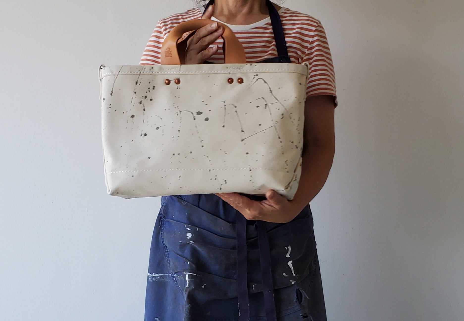 職人の道具入れだったアメリカの古いトートバッグを手本に。頑丈なcopper rivetが無骨な雰囲気のシンプルなトートバッグ。