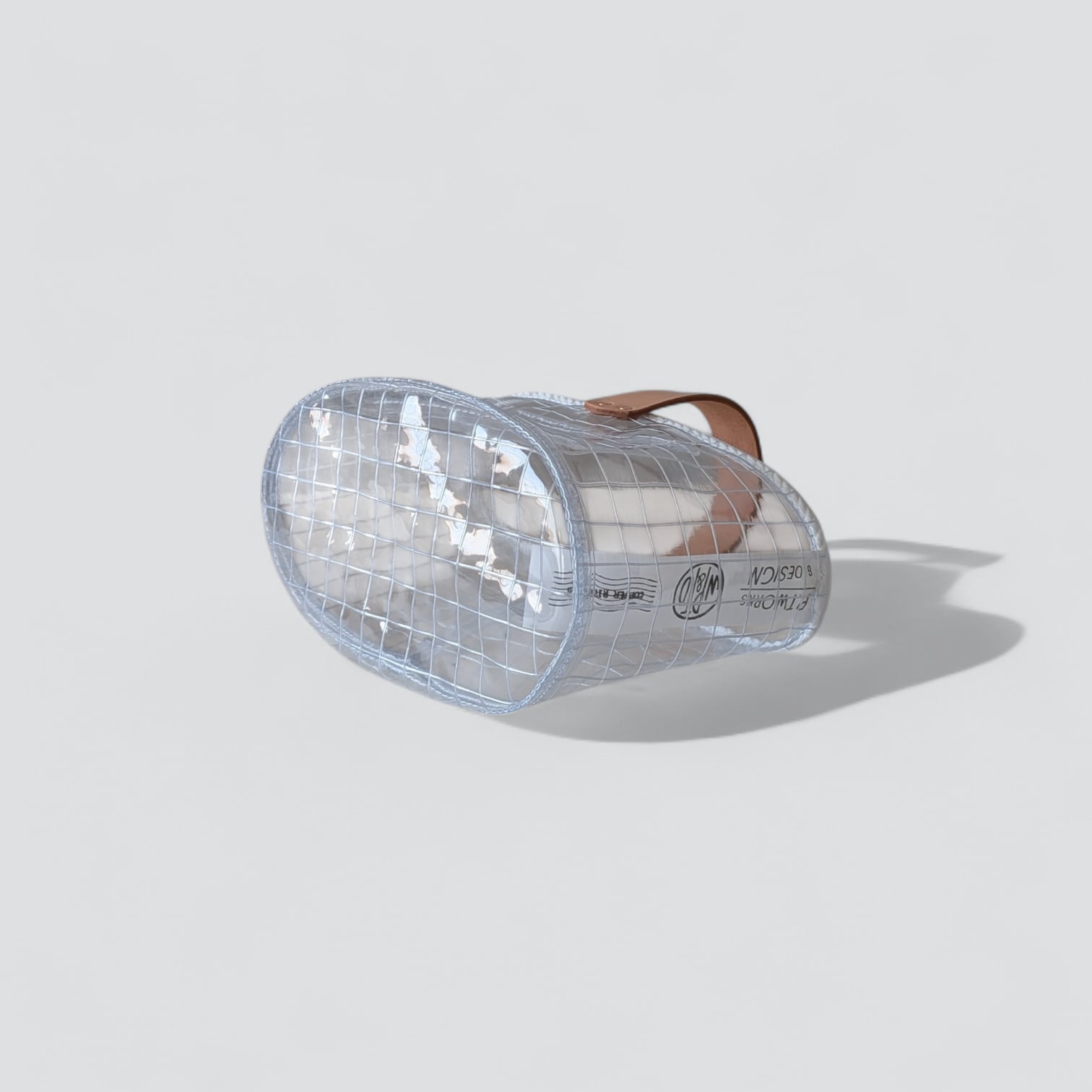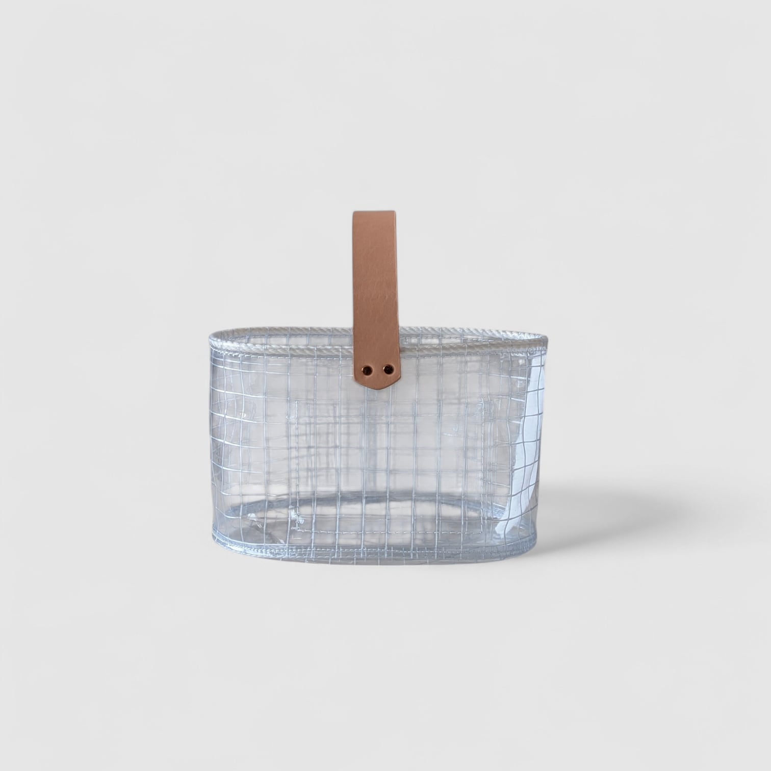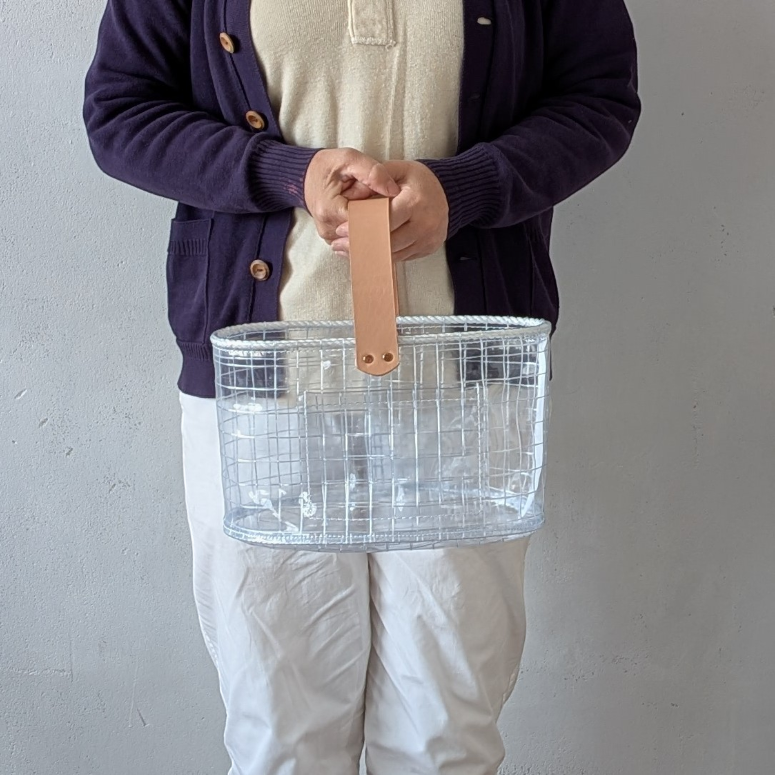 耐熱ビニール+レザーのハンドルのコンビが面白い、また汚れても洗い流せて丈夫で使いやすい。