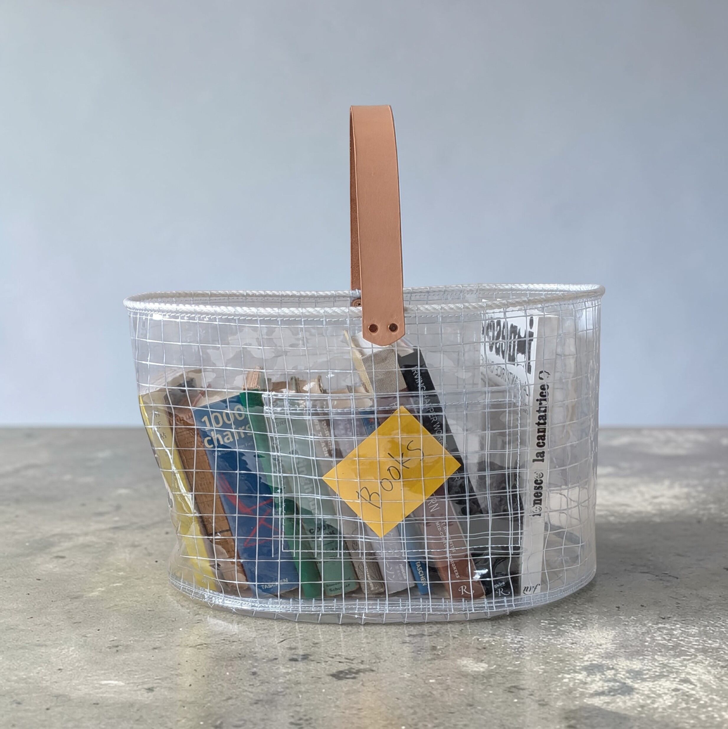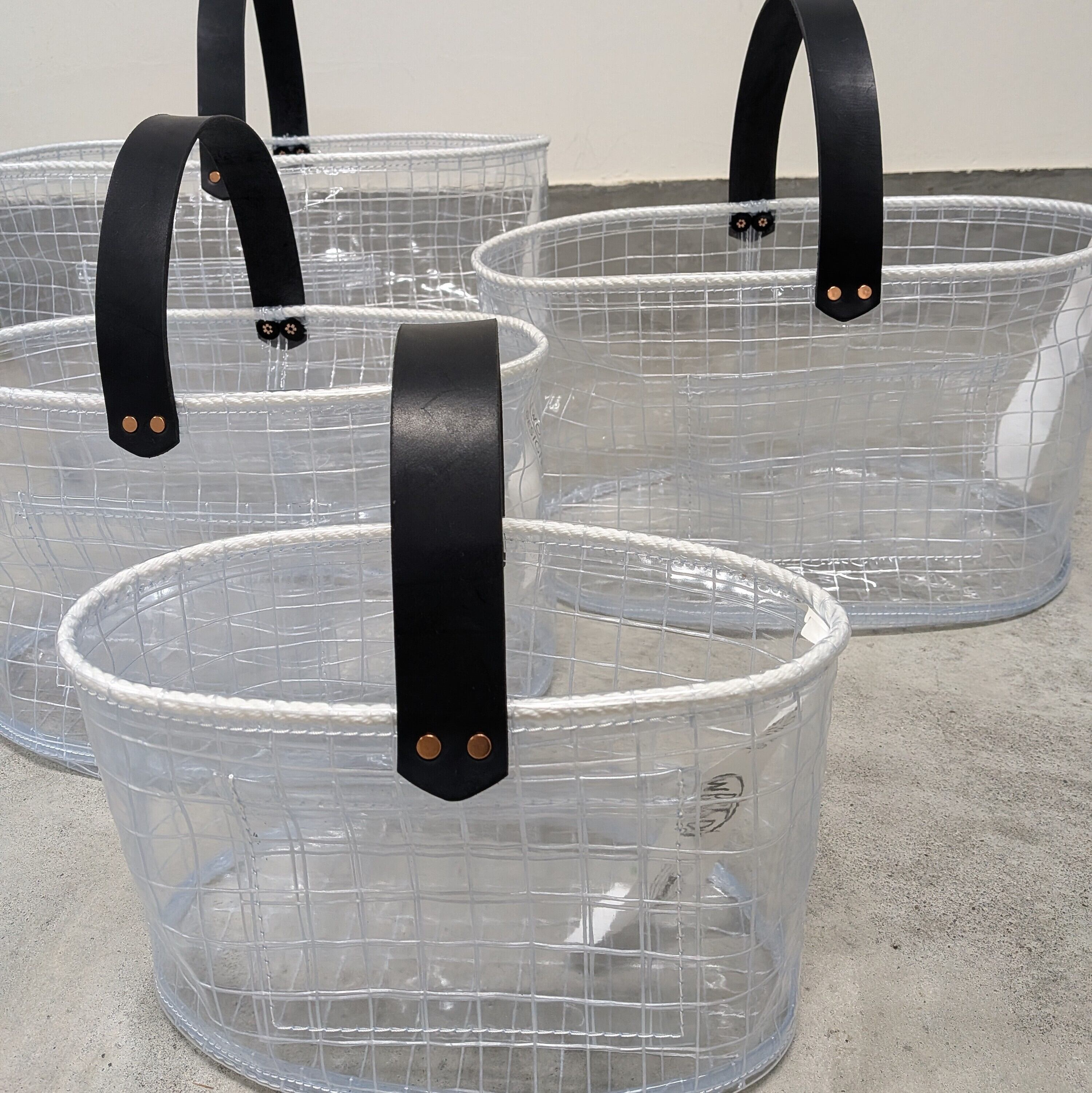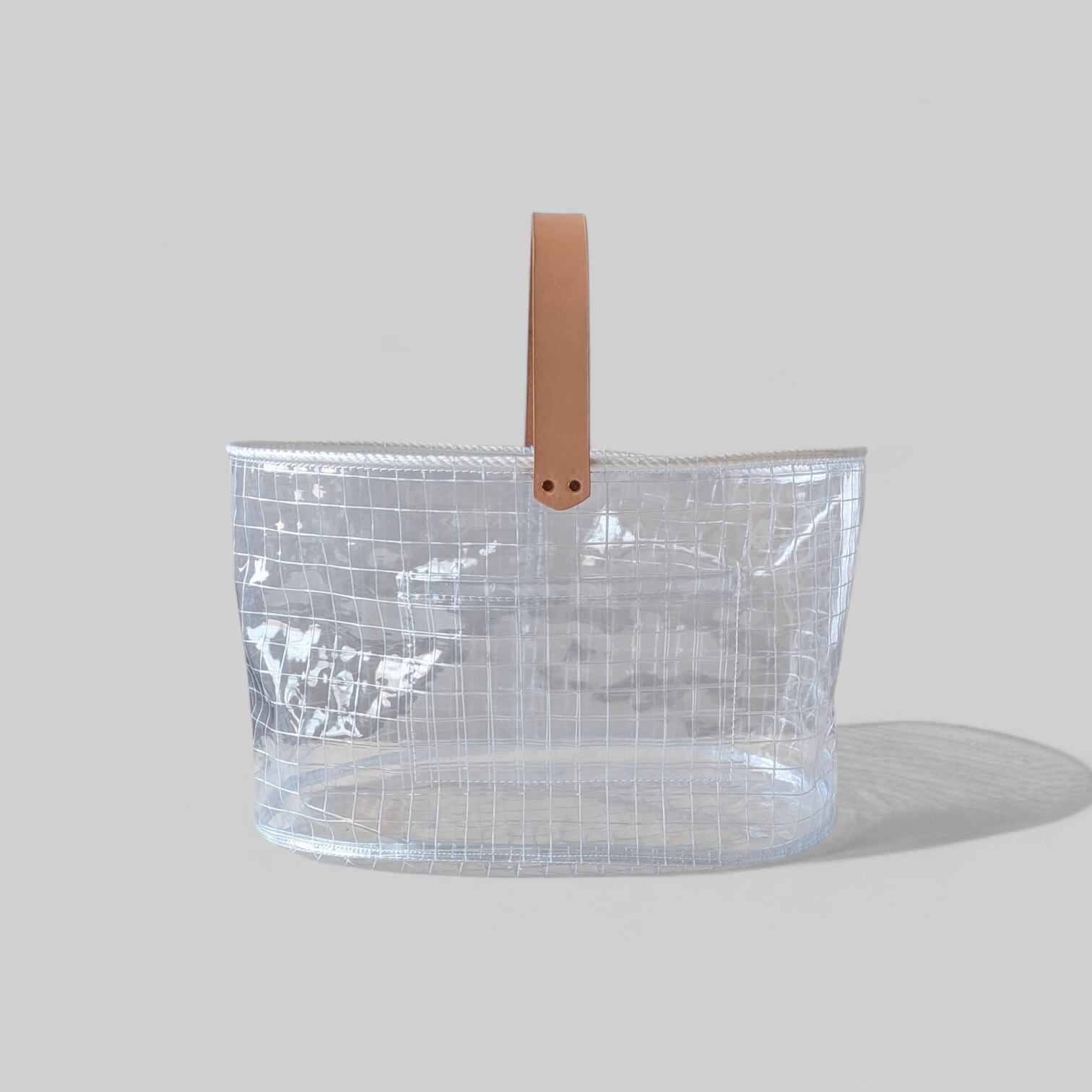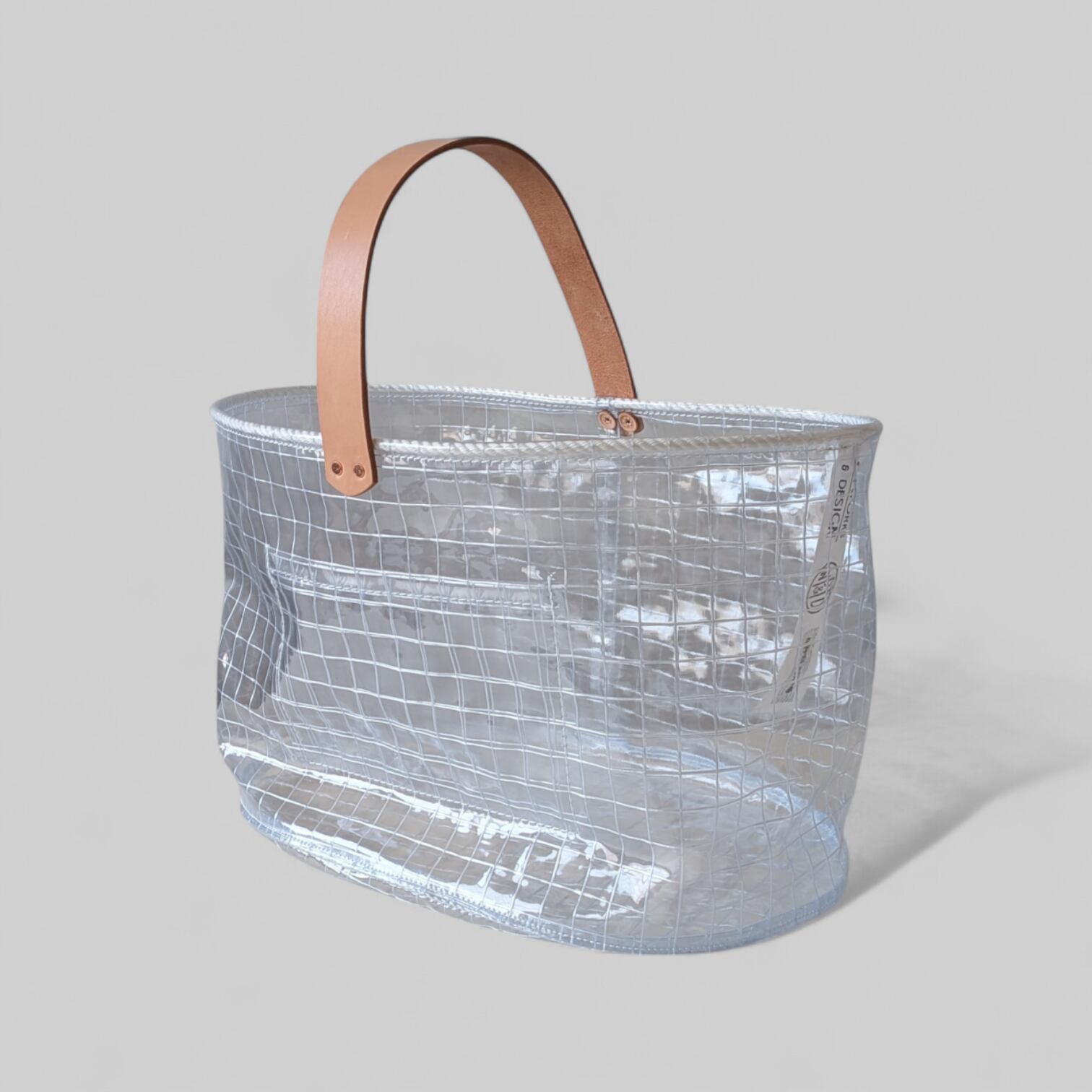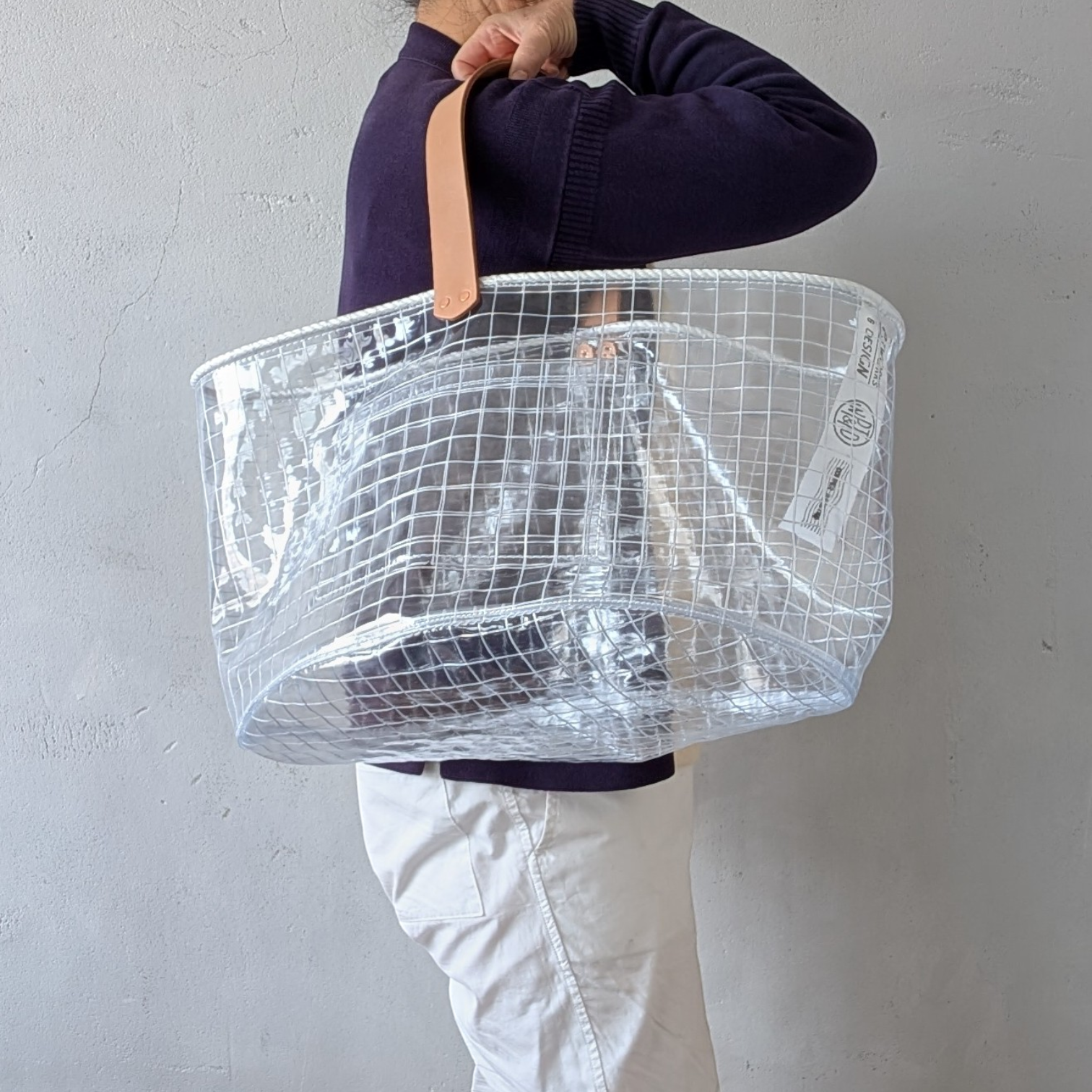 耐熱ビニール+レザーのハンドルのコンビが面白い、また汚れても洗い流せて丈夫で使いやすい。