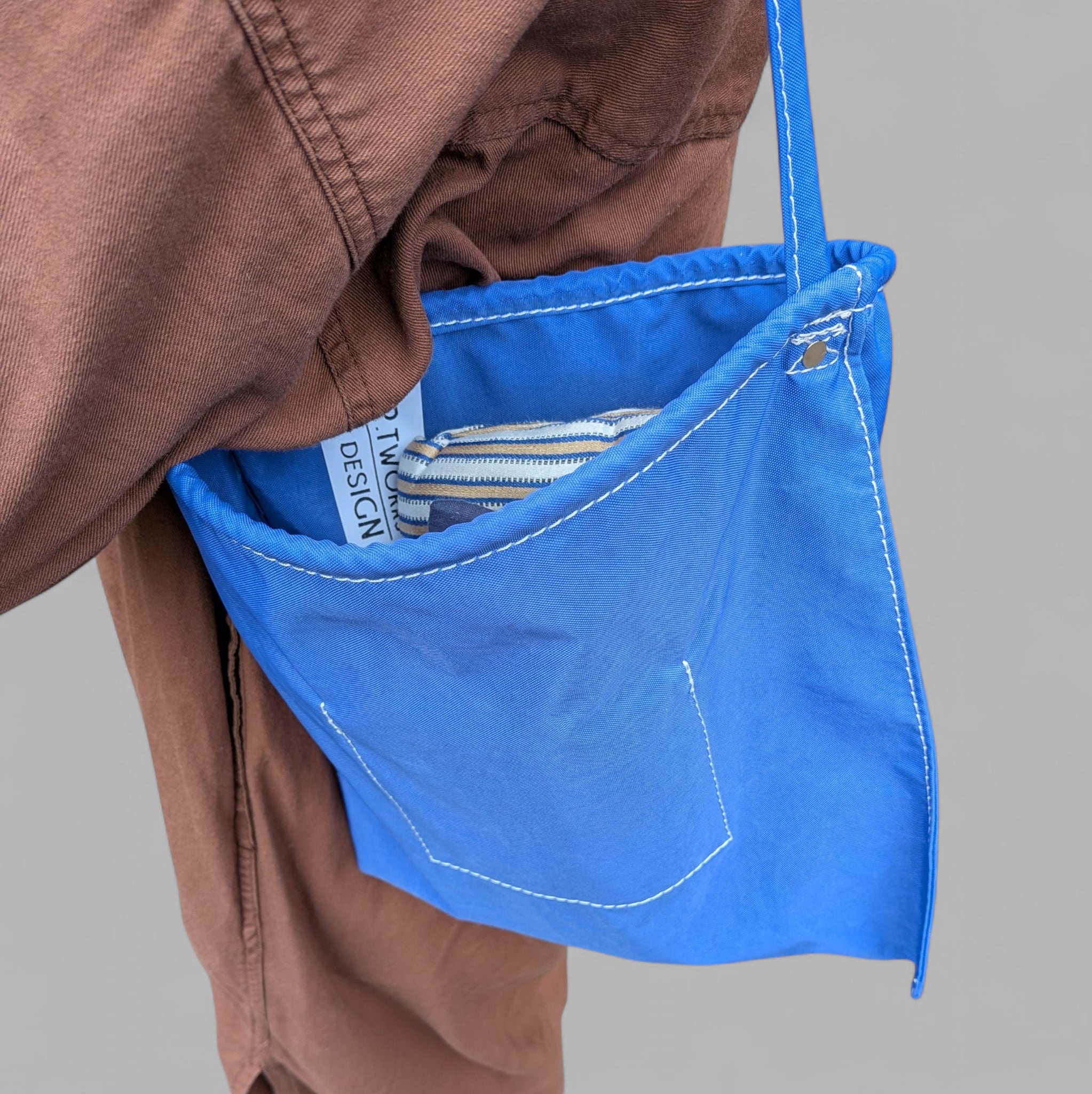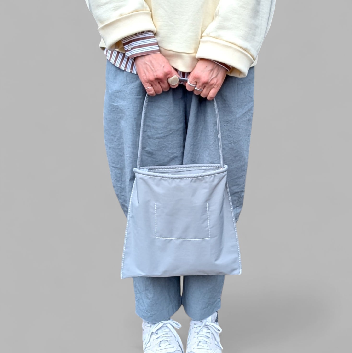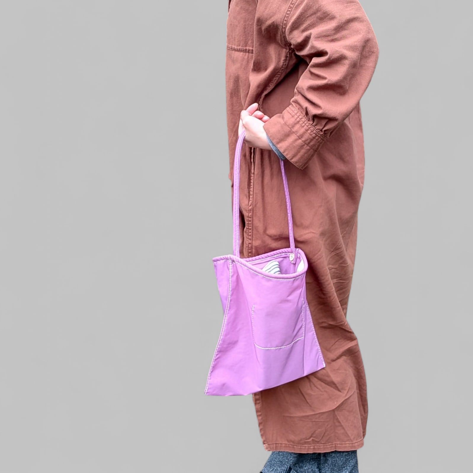 ストラップと開口部にロープを仕込んであり、軽くて、濡れても良くて、とっても良いサイズ感、良い雰囲気です。